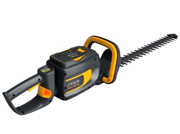 The STIGA SHT 700 AE hedge trimmer has a next-generation battery motor that allows you to work with maximum freedom and comfort, ensuring low vibrations and less maintenance, as well as quiet and zero emissions. The 58 cm double-action laser-cut blade and rotating handle ensure a perfect cut. The 180° rotating handle can be set to 5 different positions to perform vertical, horizontal or lateral cutting while allowing the user to maintain a natural arm and wrist position. The intuitive keypad makes operation easy. The 4.0 Ah lithium-ion battery can be purchased separately.