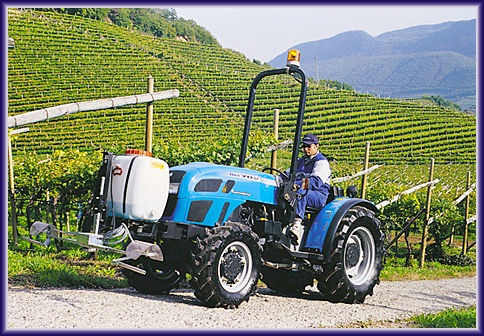 The REX Vineyard series has been designed for true professionals. It mounts fluid-cooled 3 and 4-cylinder Perkins engines that offer high performances in terms of power, engine torque and torque reserve and which, along with tried and tested reliability, represent the prime features of the range. The modular transmissions, which reflect the LANDINI philosophy, are simple and reliable, but their main feature is the low power draw typical of mechanical transmissions. The gearbox has a synchronized reverse shuttle, 3 ranges where the options are the Overdrive, to race along at 40 kph, the Underdrive to reduce each ratio by 20% and the Creeper to obtain a 300 m/h ground speed (-80% of all ratios). The all-out width of the "narrow" REX V version is only 980 mm with 28" tyres for both PLAT and CAB types while the hydraulic circuit with single or double pump makes REX V "top of the class" when it comes to performance and versatility since up to 8 auxiliary control valves can be mounted.