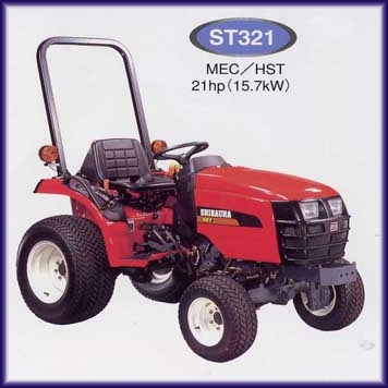 ST318MEC - 18 hp 3 cylinder water cooled diesel engine, mechanical transmission with 9 forward gears & 3 reverse gears, rear and mid PTO, 3 point linkage,4 wheel drive, power steering, single double acting spool valve, roll bar, turf tires.