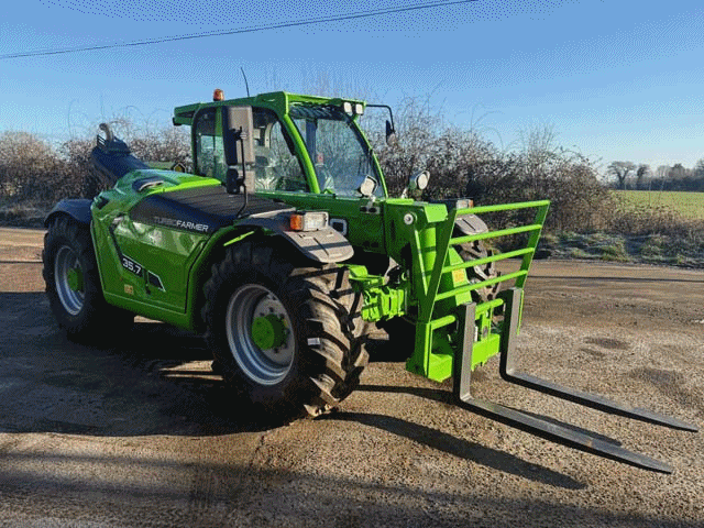 The Merlo TF35.7-140 telehandler is a high-performance machine designed for demanding applications. It features a Deutz TCD3.6 L4 engine, delivering 100 kW of power and significant torque at low revolutions, ensuring robust performance and fuel efficiency The telehandler has a nominal load capacity of 3.5 tonnes at its center of gravity (500 mm) and a maximum lifting height of 6.6 meters. When fully extended horizontally, it can lift up to 1.35 tonnes. The TF35.7-140 is equipped with full electronic management of the transmission and engine, optimizing RPM to reduce fuel consumption. It offers three steering modes, enhancing maneuverability in tight spaces. The telehandler's design includes a reverse shuttle on the steering wheel and joystick, ensuring ease of use. The cab features an ergonomic design with a 180° opening door and an air-conditioning system designed to automotive standards. Safety features include active systems to prevent frontal tipping and a certified cab for operator protection. The telehandler also boasts a maximum travel speed of 40 km/h and a climbing ability of 45%, ensuring optimal performance on uneven terrains. The TF35.7-140 is suitable for both industrial and agricultural tasks, making it a versatile and reliable choice for various environments. this model is equiped with -